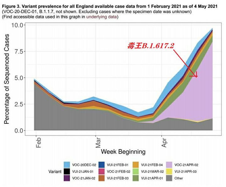 但没曾想,正是这个老二B.1.617.2,在英国(以及全世界)超神发挥,迅速取得英格兰公共卫生署VOC认证[1],摇身一变,成为了跟B.1.1.7、B.1.351和P.1平起平坐的官方背书的大毒王: