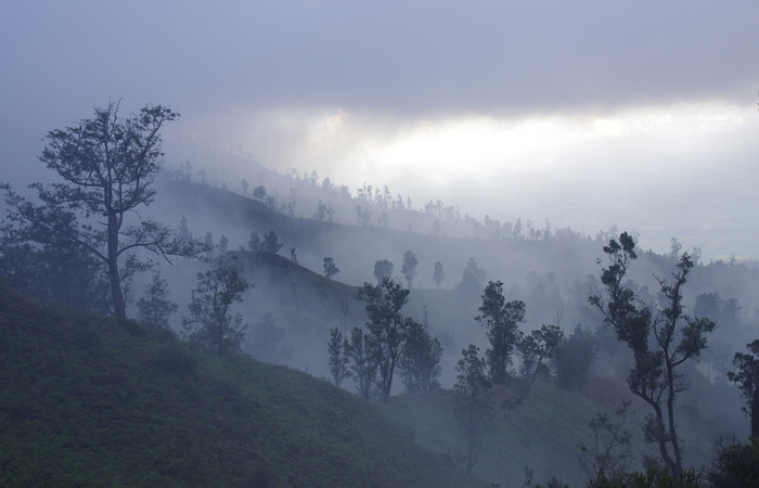 ijen 的山林和天气也是很怪异。 这是下山时候拍到的,感觉妖气弥漫阿, 指环王之类的魔幻片到这里取景应该是没问题的。