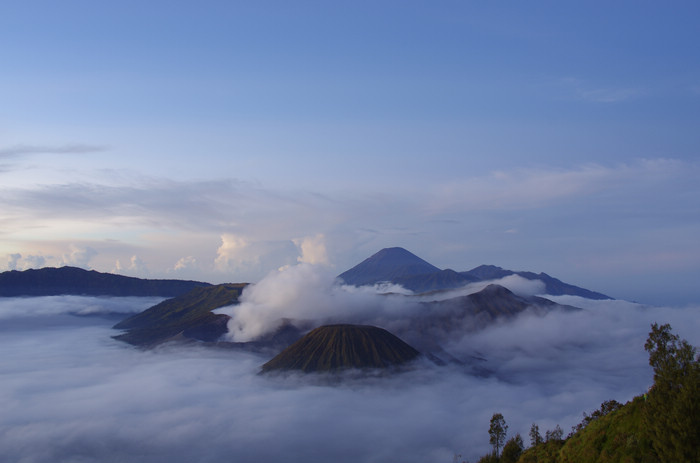 这是bromo边上的山头,温度不是很高,头脚都还裹在云雾里。