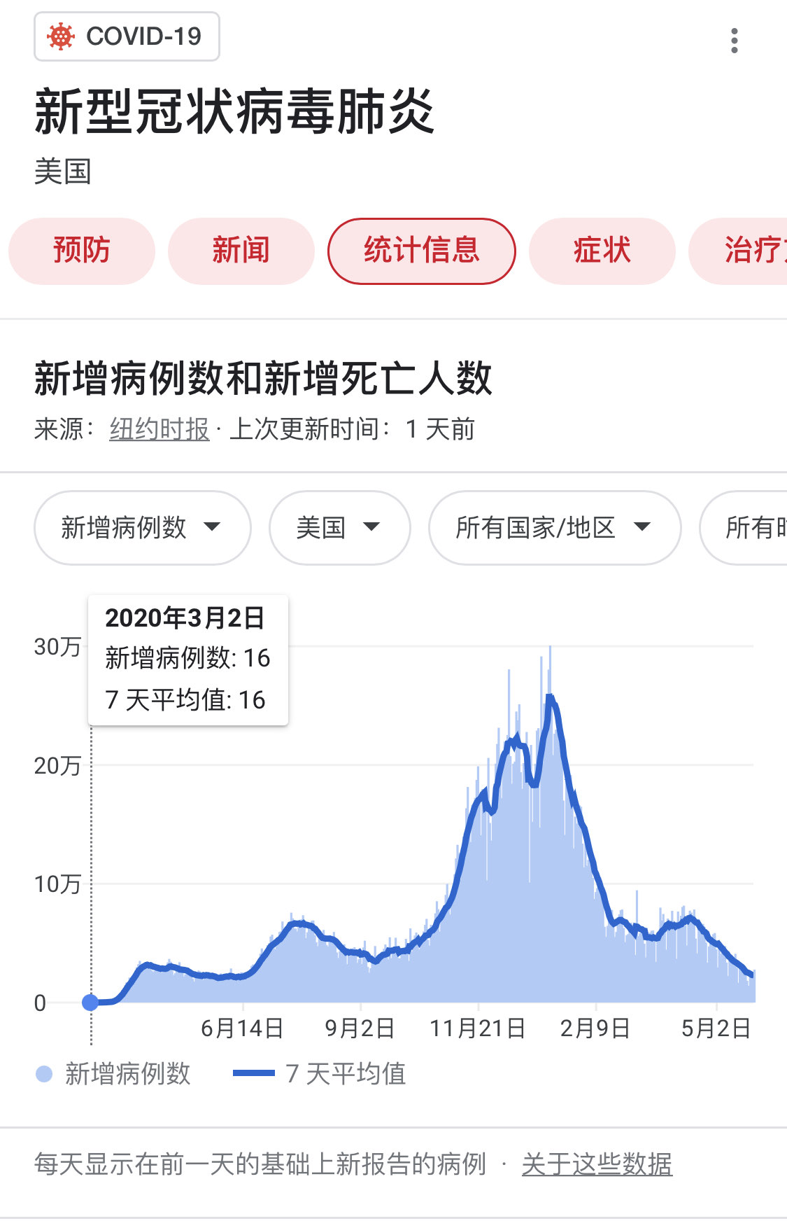 一段时间没有关注美国疫情了,国内的新闻也不怎么报道;坡县的也只是说美国全民打疫苗 就可以抽奖,吃薯条 这种娱乐至死的新闻 今天看了下数据 这效果还是很明显的