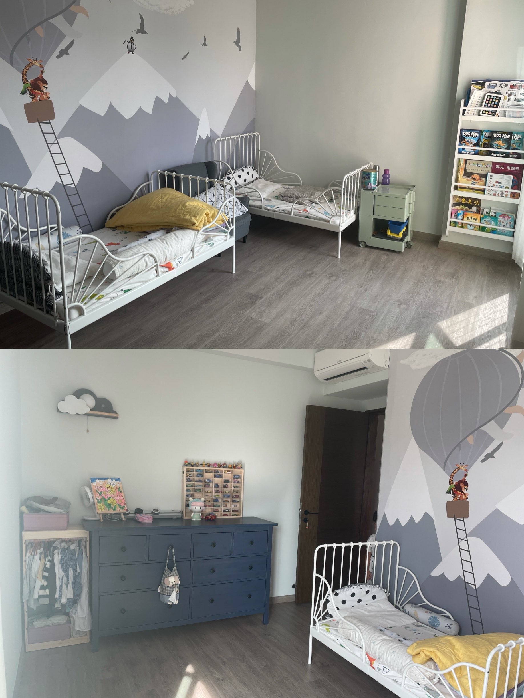 楼主儿童房布置好棒啊看上去放了两个小床都还有不少活动空间,可以拍一下分享下吗?房间多大?