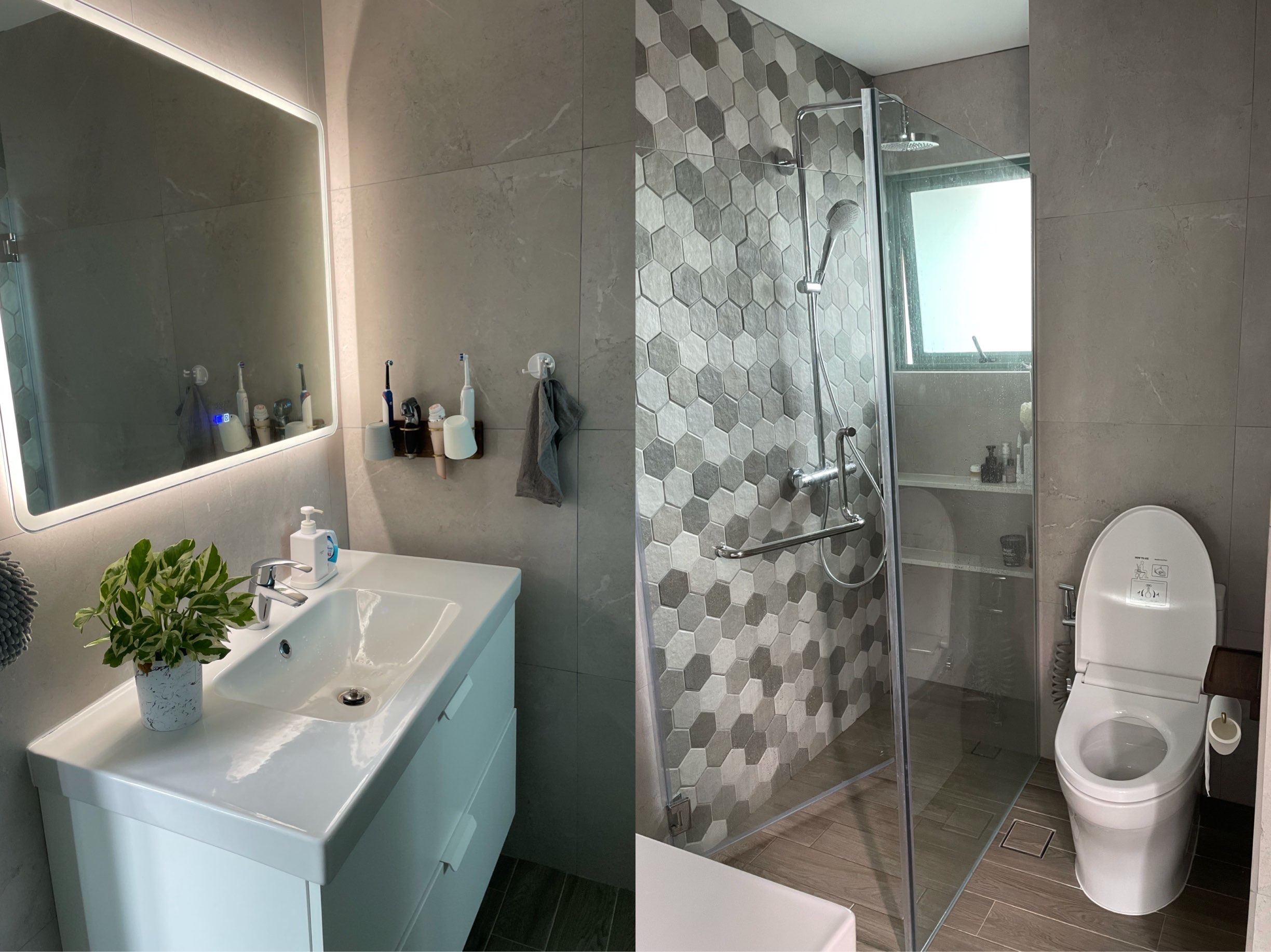 两个洗手间是我最满意的地方这里贴个主卫的,装修大叔连地漏都是很用心的做的
