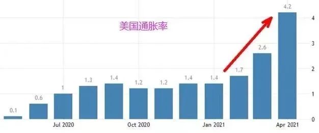 从今年3月份开始,美国的物价开始飞速上升,4月份的情况更加严重,通胀率已经达到了4.2%的严重程度,远远超过2%的警戒线。