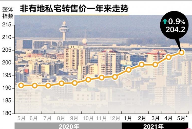 因管制措施限制,5月实地看房活动减少,共有1722个私宅单位转手,低于4月的1944个单位,但仍比五年历史平均高出86.6%。