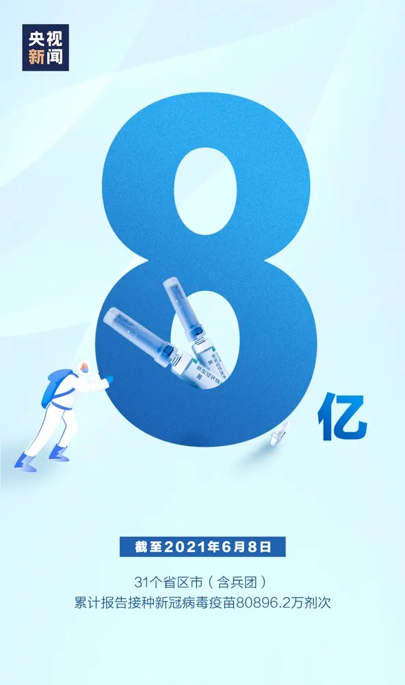 功夫熊猫 • • 3780 次浏览国家卫健委今日通报截至2021年6月8日31个省(自治区、直辖市)和新疆生产建设兵团累计报告接种新冠病毒疫苗
