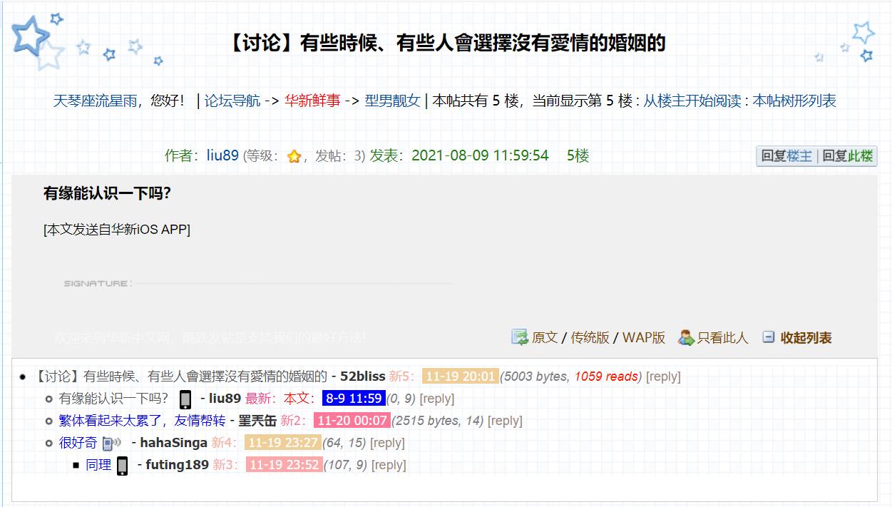 主贴是个讨论帖(不是交友贴),还是繁体字的,或许是转帖的,层主也回复有缘能认识一下吗?