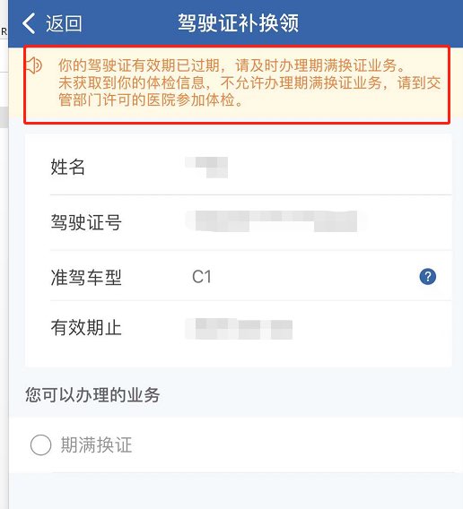 jackyai • • 3502 次浏览今年国内驾照到期了,已经下载了APP交管12123,但是在线换证的话,一直提醒因为没有收到体检报告不能更新,怎么操作呢。