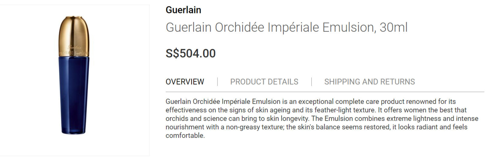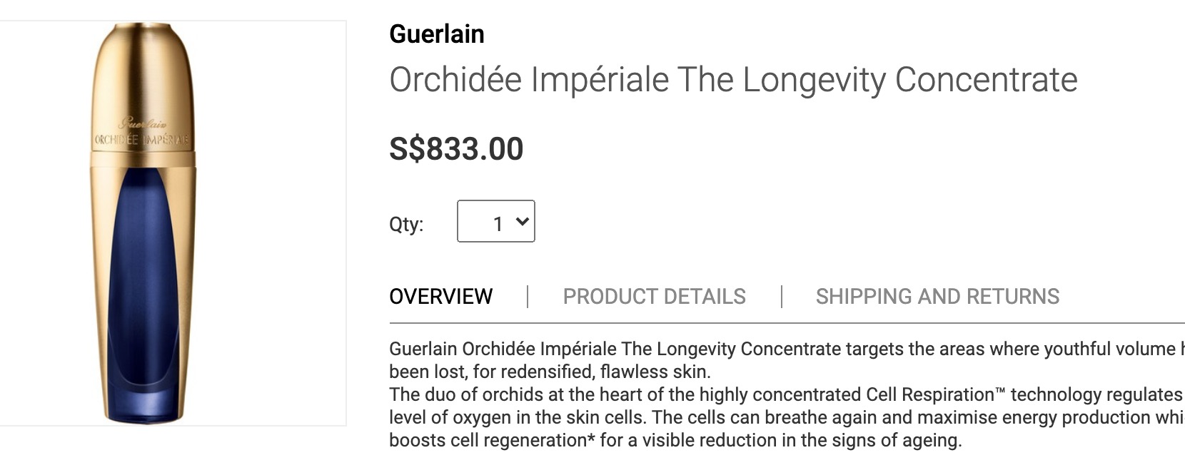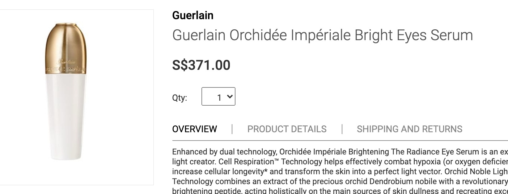 3. Guerlain娇兰 御庭兰花夜间睡眠修护精华30ml,SGD400有1个坡柜正价833新币。除了黑兰它最贵了。