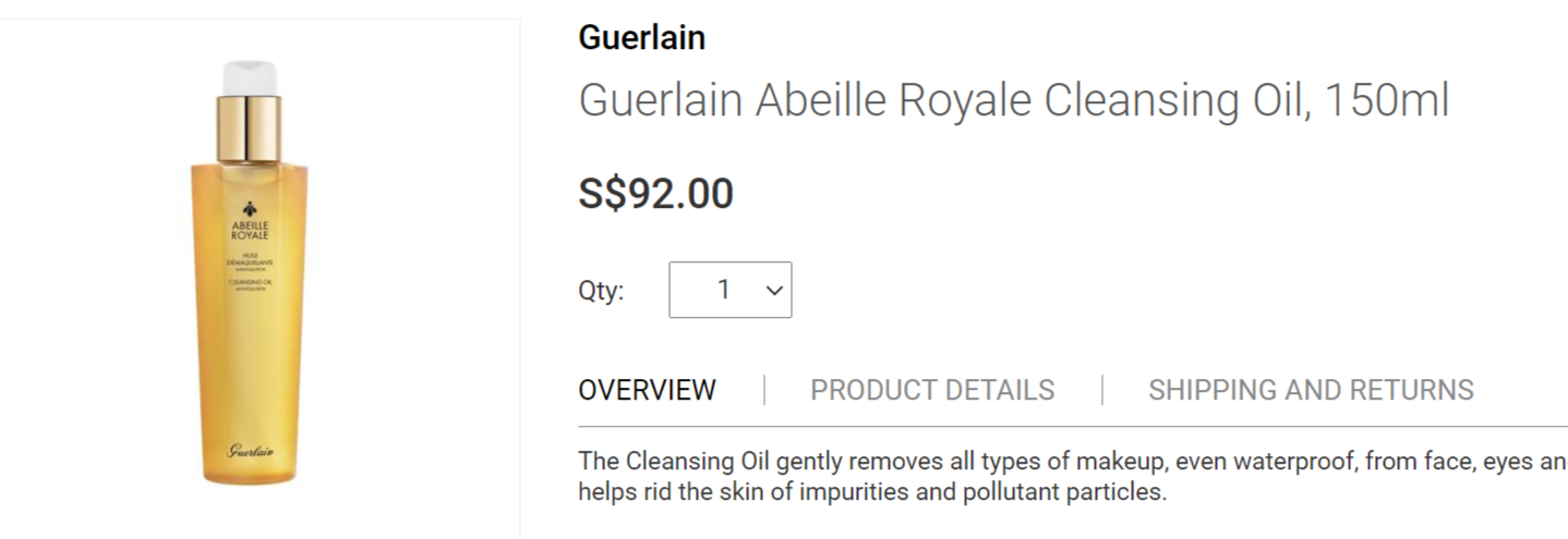 14. Guerlain娇兰 帝皇蜂姿 柔肤净透卸妆油150ml正装, SGD55 最后一个