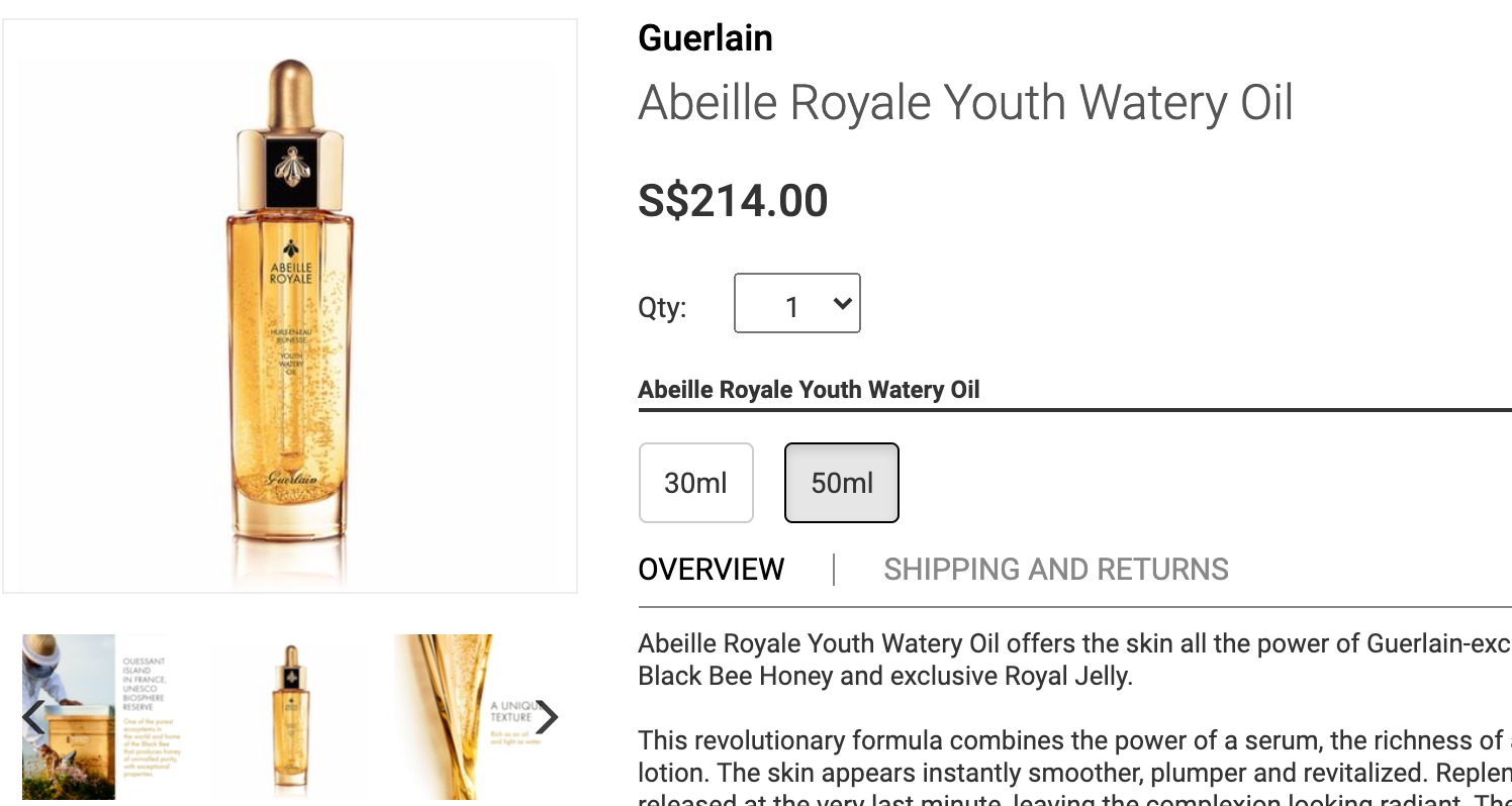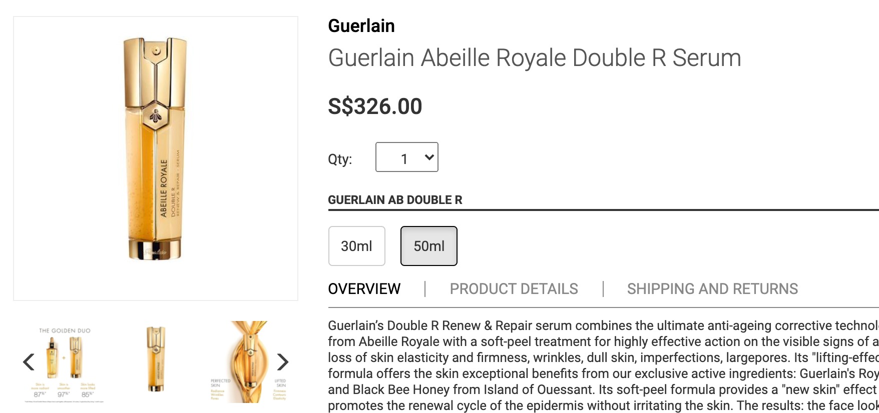 10. Guerlain 帝皇蜂姿赋妍紧致精华露50ml超值套装,SGD165 有两套