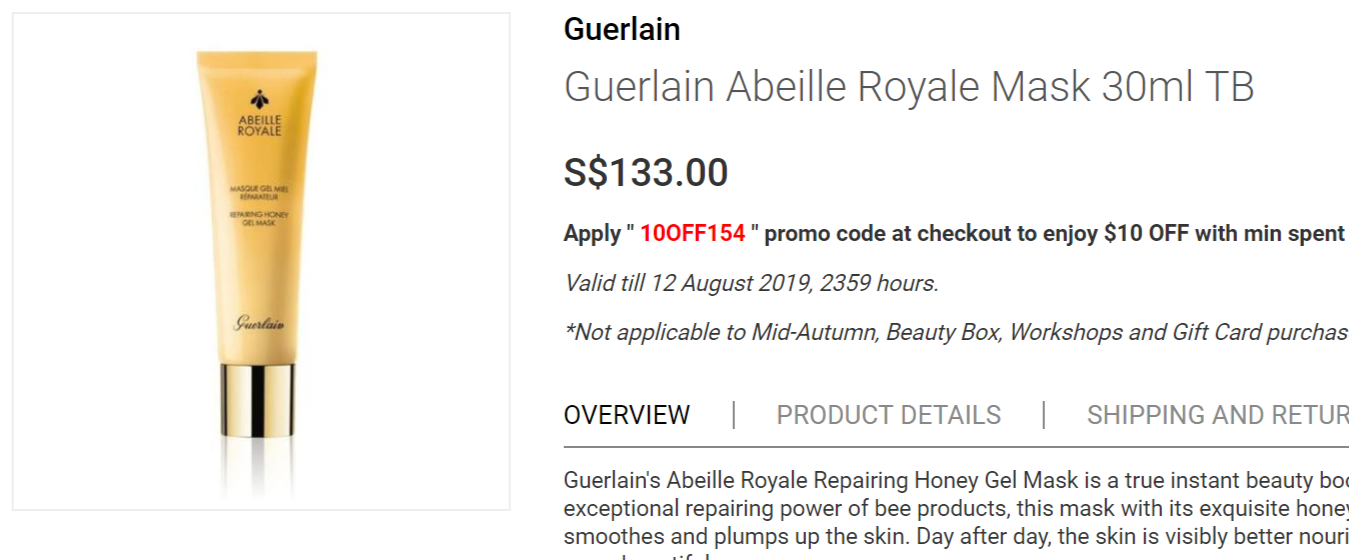 11. 临期亏本特价Guerlain娇兰 帝皇蜂姿 紧致修复凝蜜面膜30ml便携装,SGD16 有两个