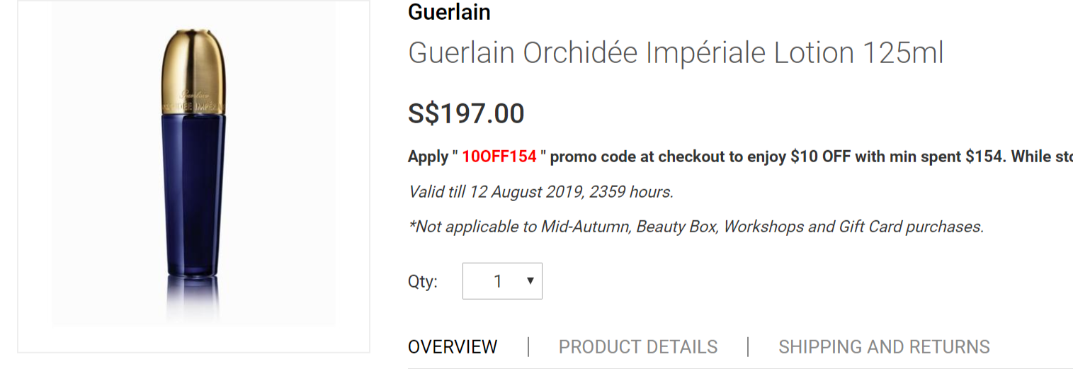 4. 特价Guerlain娇兰 御庭兰花the lotion卓能焕活精华水125ml,SGD84 有3个坡柜定价197新币。18年8月批号,保质期到2021年8月。