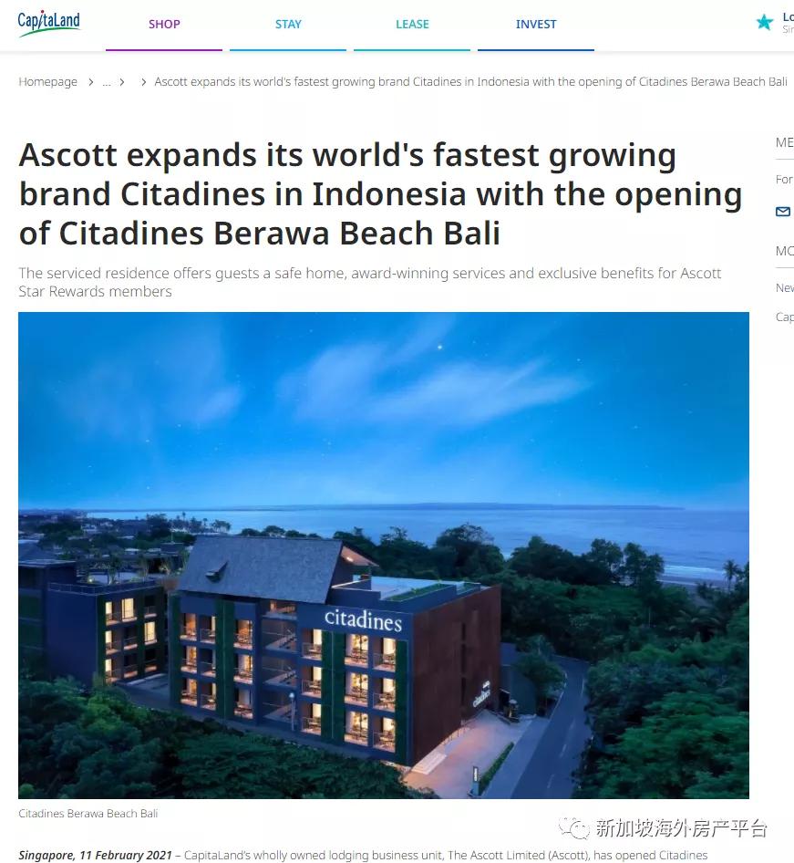 来自新加坡凯德(CapitaLand)旗下的雅诗阁(Ascott)官网,于2021年2月11日宣布酒店的开张消息: