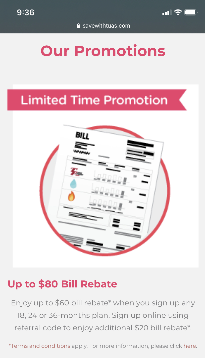 每人20,申请时填code。https://savewithtuas.com/promotions/