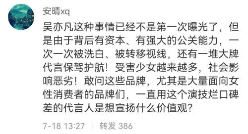 事实上,这已经不是吴亦凡第一次爆出类似丑闻,有很多网友看了采访后都强烈表态,要求这样人品败坏的明星应该退圈及受到法律制裁。