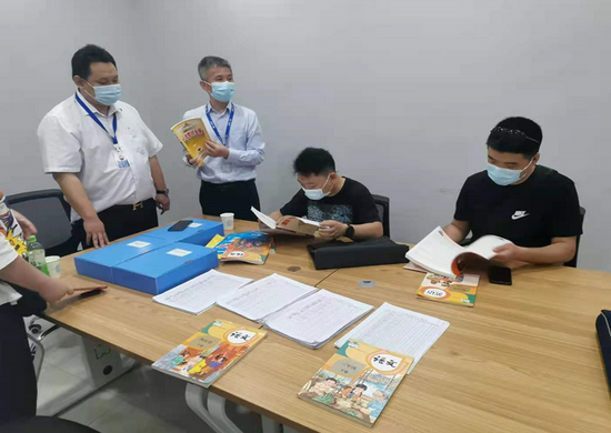 硚口区“扫黄打非”领导小组办公室组织区教育局、区市场监管局、区文化执法大队,对硚口区内校外培训机构开展教材教辅读物专项检查行动。检查执法人员对校园、培训机构周边文具店、书店开展常规检查,重点检查书店有无违规销售教科书、盗版教辅等行为,对培训机构正在使用的教材及机构内设图书角进行认真检查。同时,检查组向各机构宣传法律法规,引导师生从自觉抵制盗版教辅读物等非法出版物,共同创建良好文化环境。