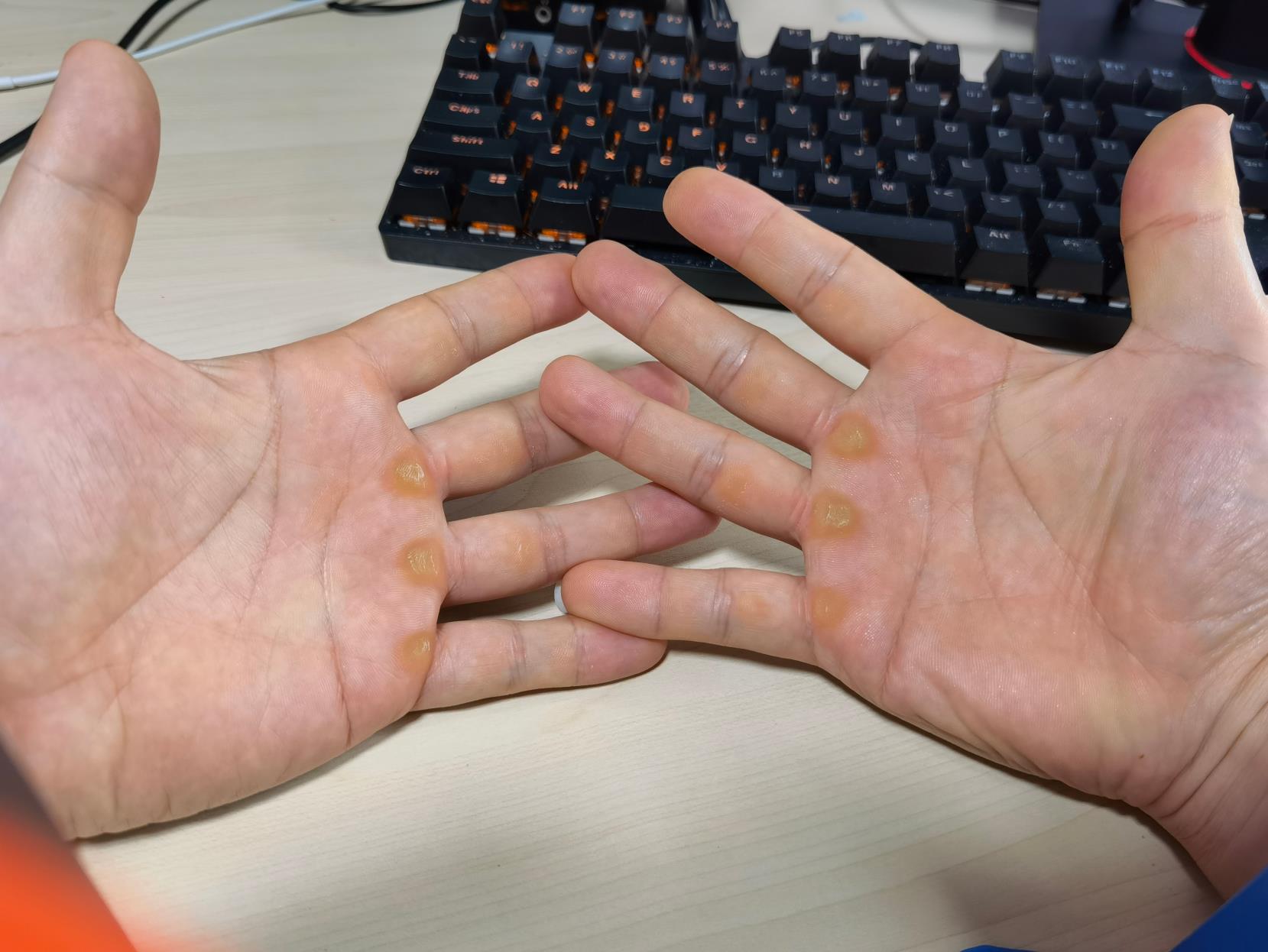 油腻的年龄做不了引体向上?要不来试试这个 “Muscle Up”?几天前尽力试了一下,一口气 6 个 Muscle ups + 6 个引体向上。这一套弄完,手掌那叫一个火辣酸爽(见照片) 。。。