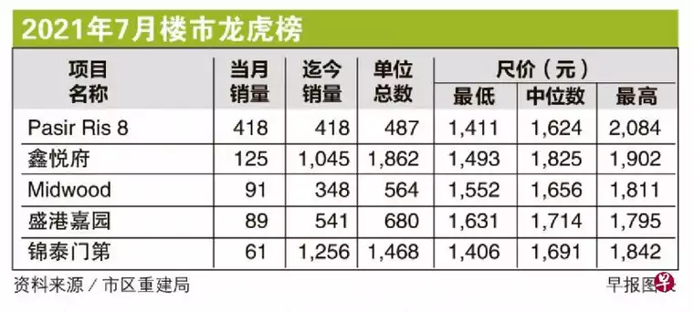 7月份唯一开盘的白沙新综合项目Pasir Ris 8热销,成为该月新私宅销售冠军,并引发溢出效应,带动其他项目销量显着上扬。