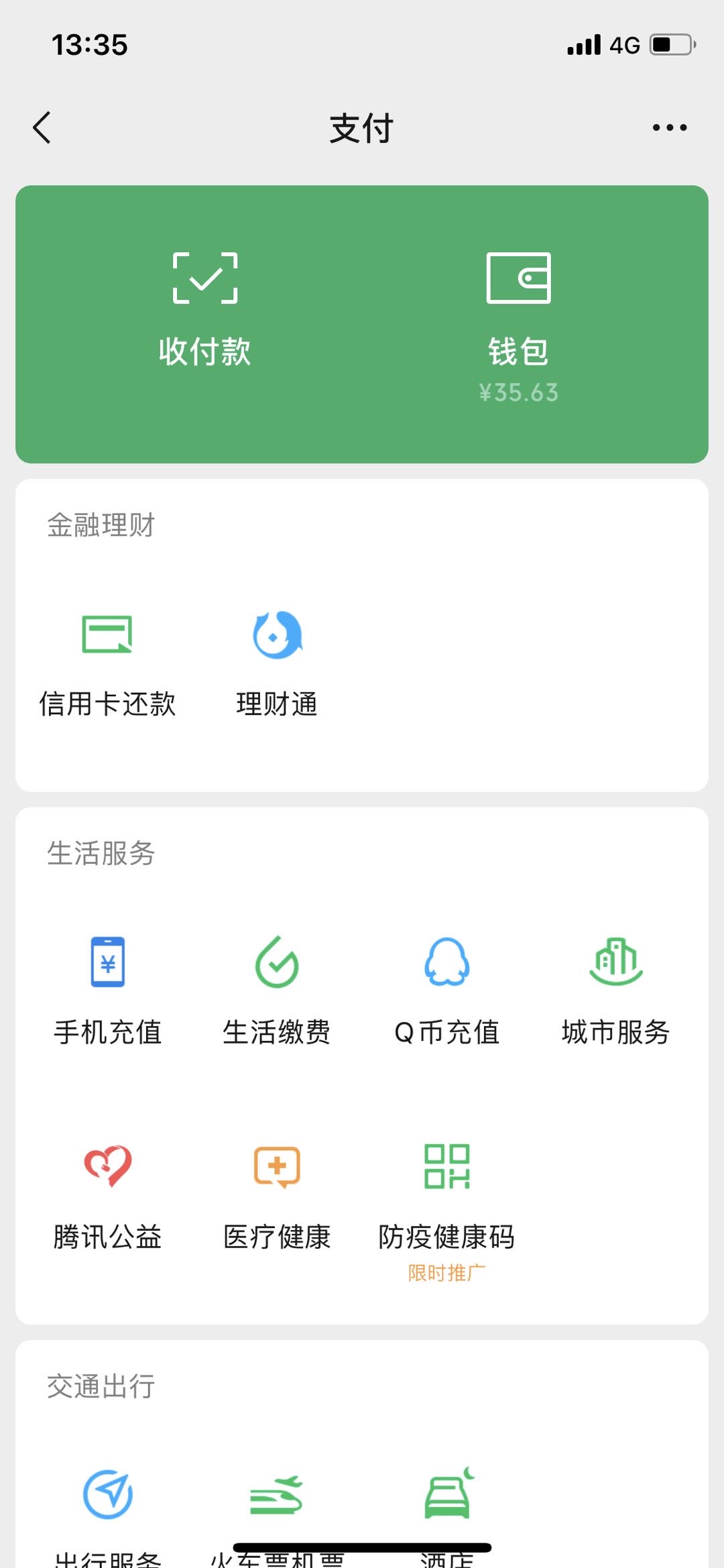 我看了看我的微信“支付”页面,里面有健康吗功能。 -