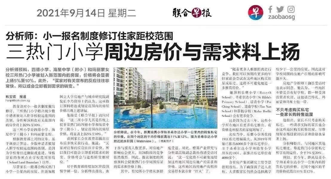 热门小学周边房价与需求料上涨与同区私宅相比,靠近热门小学的私宅享有的溢价介于3%-20%之间