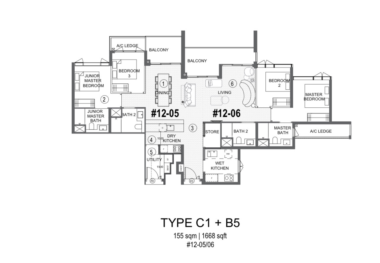 大户型单位在leedon green 已经所剩无几,新的办法是用已有的户型来合成大间的。