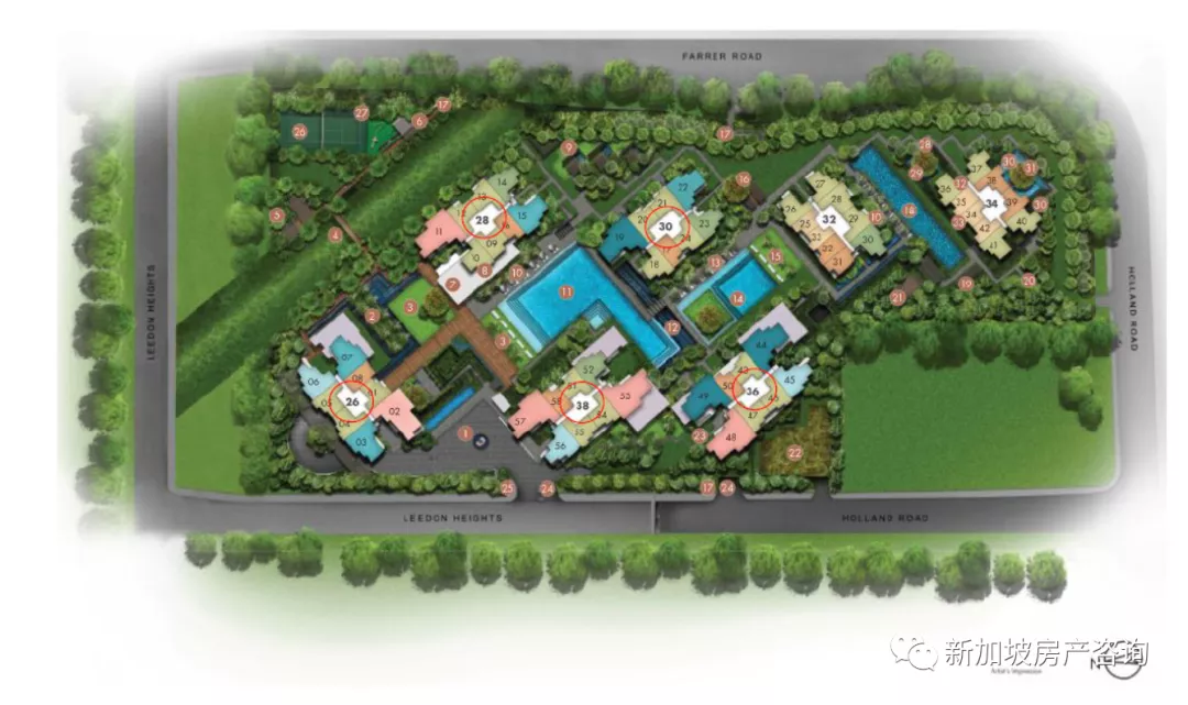 绿墩雅苑Leedon Green, 位于荷兰村,永久地契。拥有以下特点: