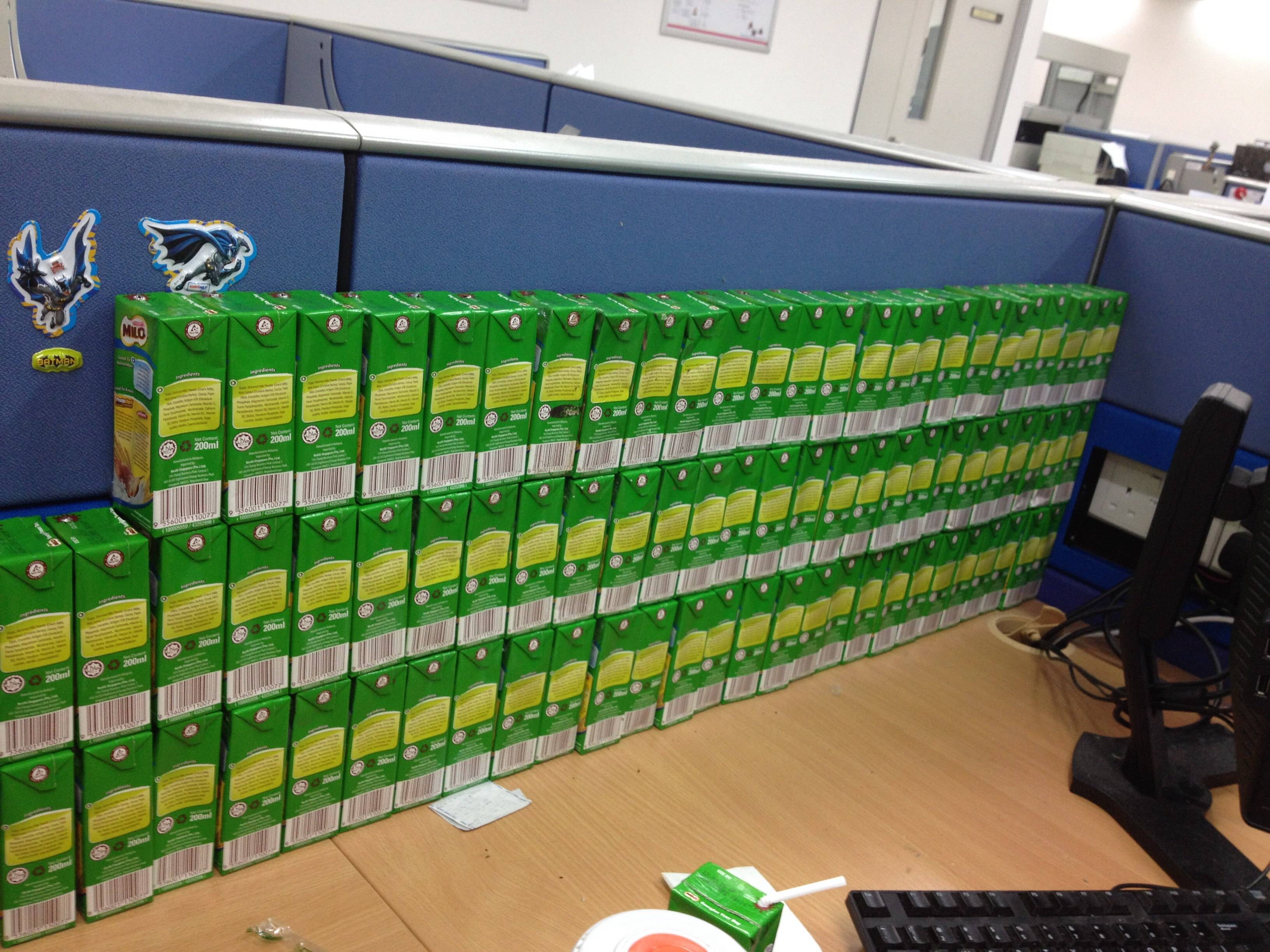 原来是喝掉后的。。。。我还以为是摆了这么多打算慢慢喝。。。话说对milo没爱啊,不过最早的时候我们家大可乐的瓶子垒起来也很可怕。。。。话说对milo没爱啊,不过最早的时候我们家大可乐的瓶子垒起来也很可怕。。。。