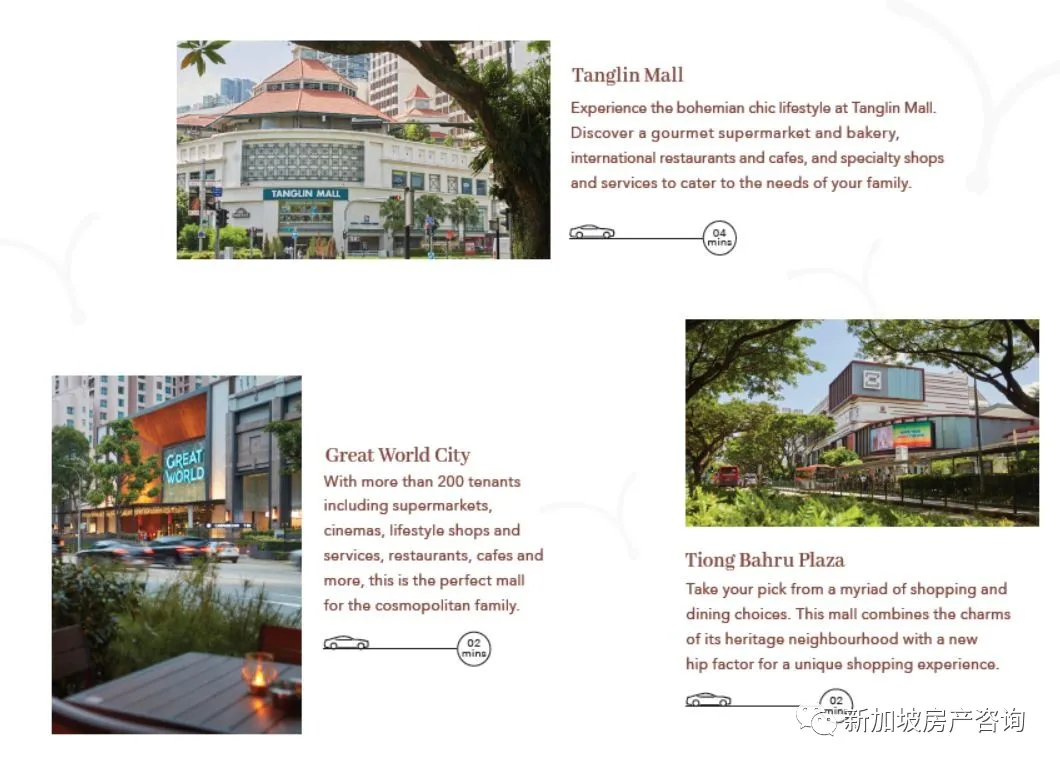 附近也有多所知名的大商城,Tiong Bahru Plaza中峇鲁商城, 大世界商城Great world city都在两分钟车程内。