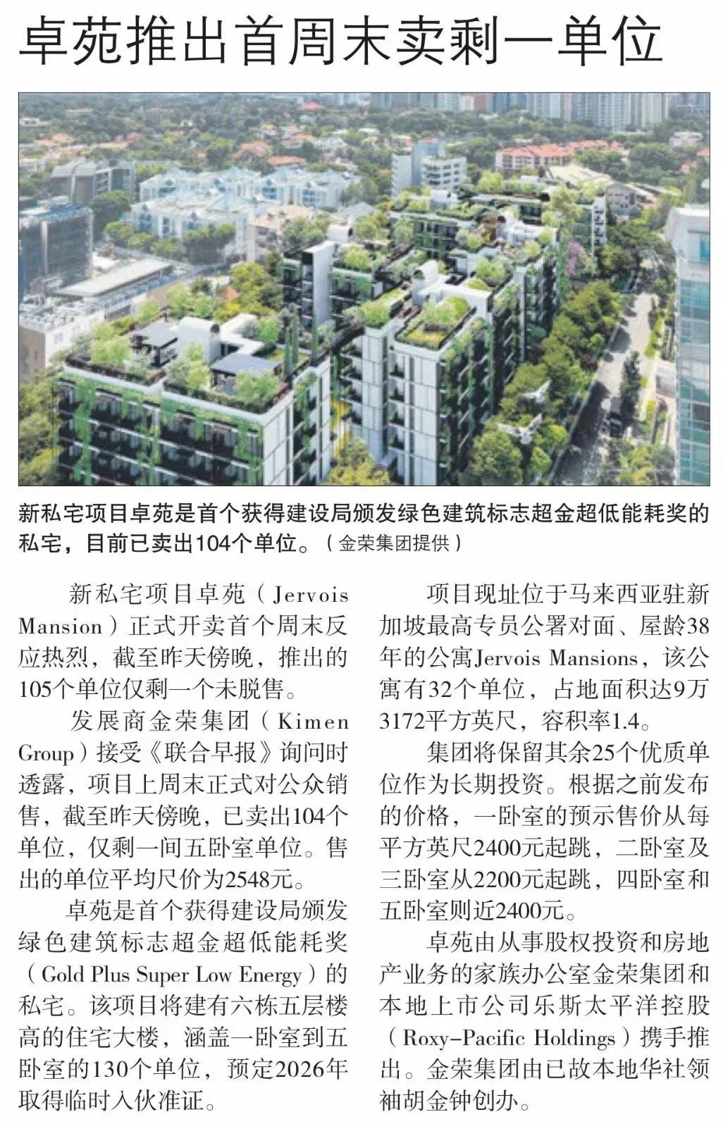 中文新闻 喜欢的朋友可以阅读卓苑的中文新闻,总体上这个盘还是适合自住,三房成交尺价大部分在2300-2400总价230万-250万之间。第二期的还有三房大户型和四房大户型,但不确定什么时候开卖。