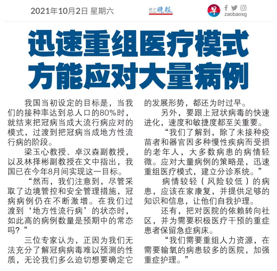 2. 因此新加坡的共存,只是融入国际秩序的一个必要步骤。举个例子,现在从新加坡出发去欧美,只要打了疫苗,基本上是畅通无阻的。主要的问题是回来要隔离。客观地说,并不是新加坡闯出一条路然后别人可以「抄作业」,而是我们在打完疫苗死亡率降了一个数量级之后,如何跟上世界的步伐。