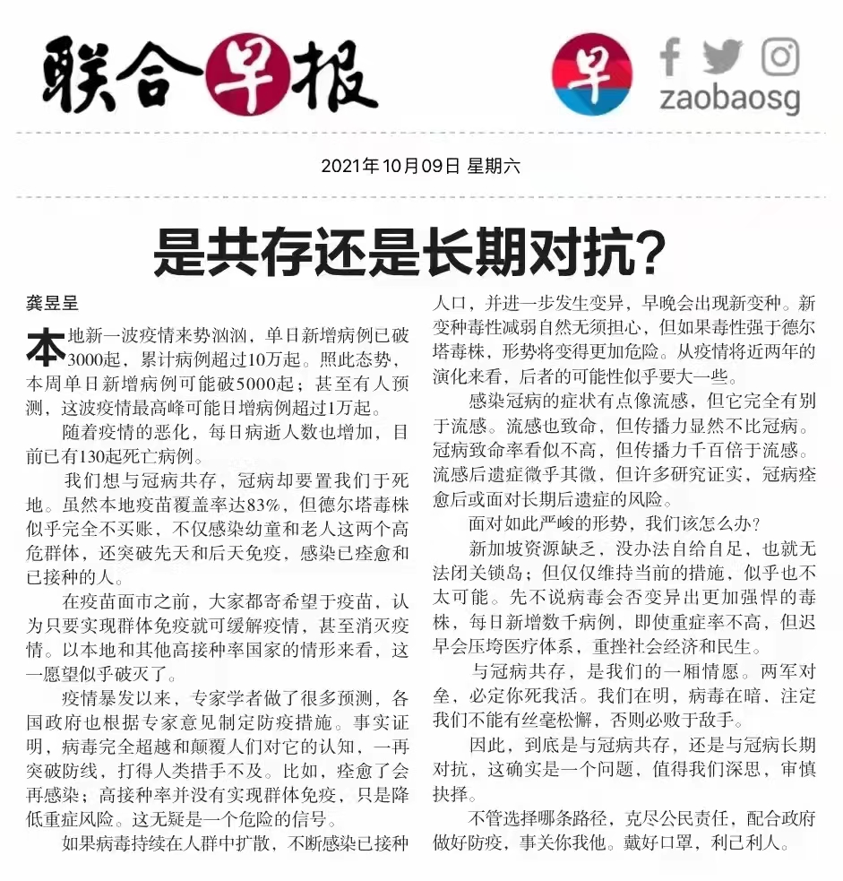 未接种公众不能在小贩中心和咖啡店堂食 也不能进入商场和景点www.zaobao.com.sg/realtime/singapore/story20211009-1201644