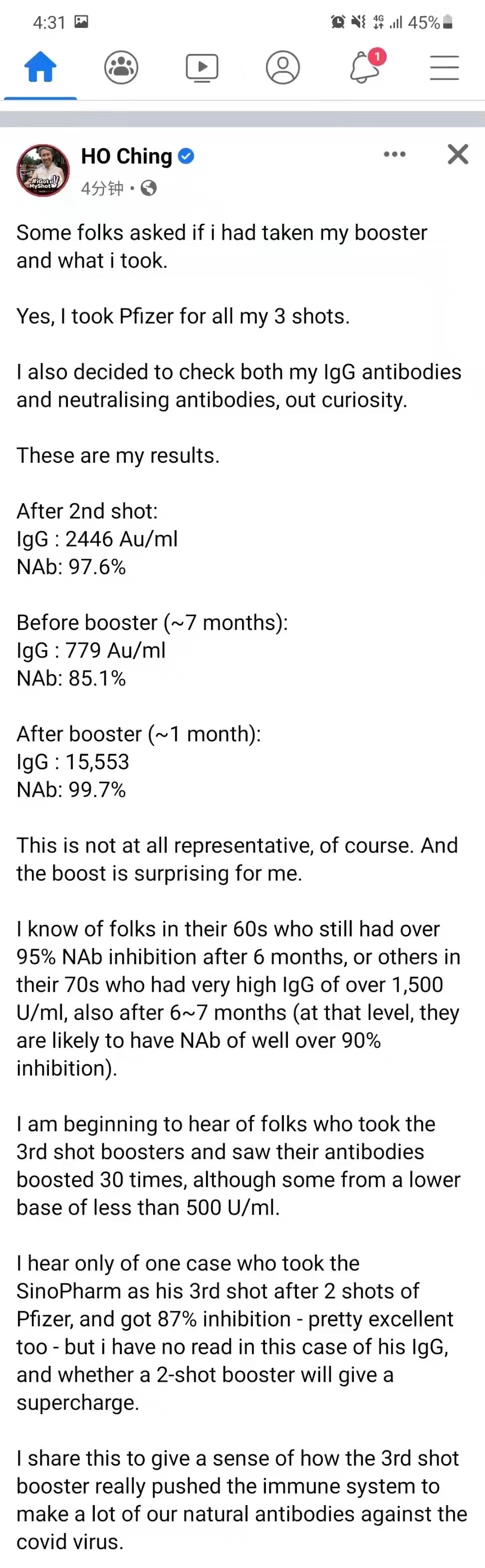 hejing发的她自己的第三针后的数据看起来很强大,不知道六个月后能降到什么程度