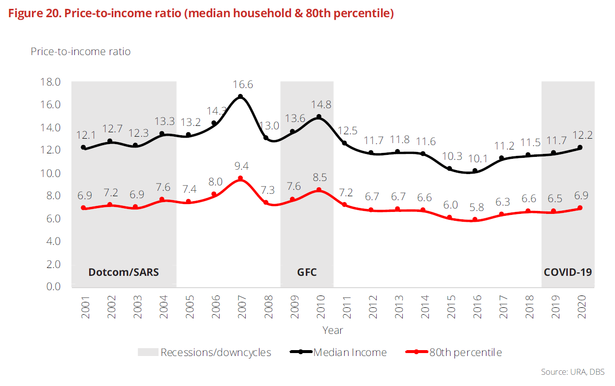 这个报告拿80%的居民收入来比较,本身就是错误的,私宅的买家是80%那个群体吗,不是说新加坡80%是住在HDB里吗,私宅又不是满足80%家庭的需要的,拿这个群体的收入来比较,就是错误的,应该拿前20%到前40%这个群体的收入来衡量买家负担能力。