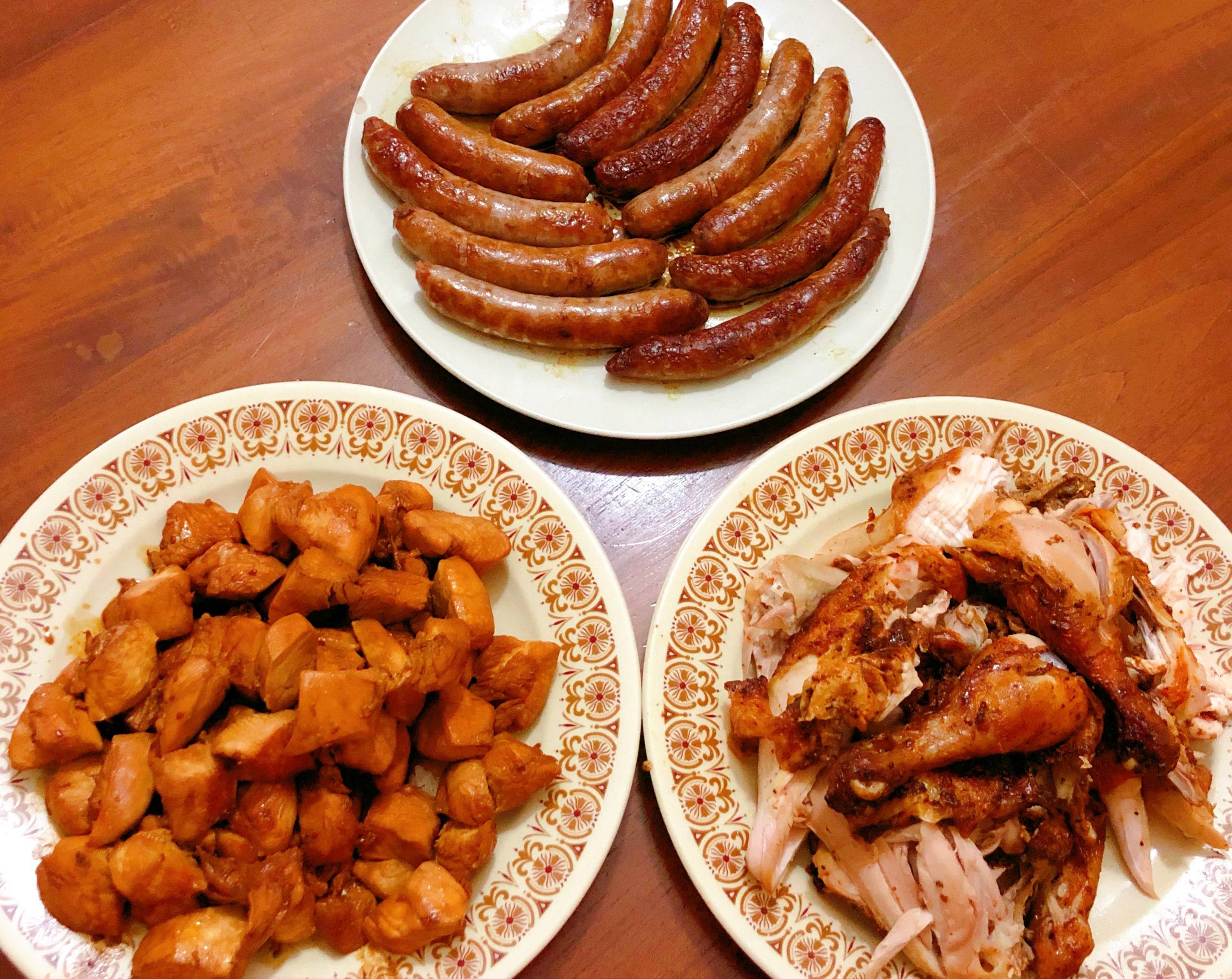 我也算食量不小,我全天吃的肉合起来算成生肉大概 400 多 g 吧,估计不到照片中的一半的量。