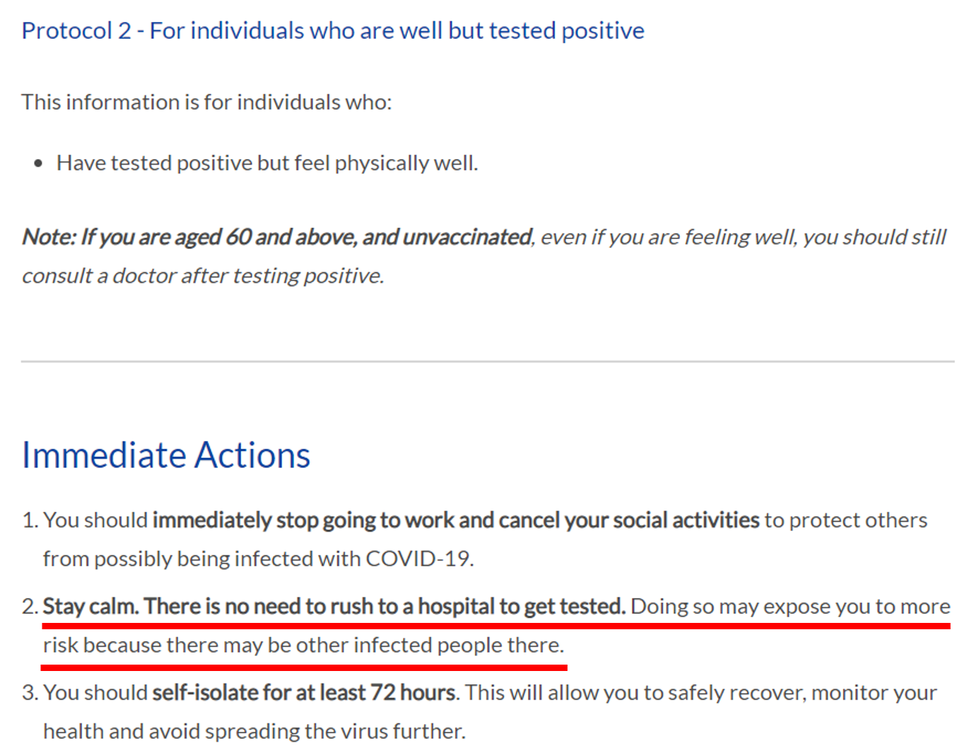 政府明显在呼吁大家尽量不要去医院做PCR,已经阳性了,还要去医院,可能去传染给别人;也抢占政府资源,同样的精力,花到那些需要进行治疗的人更好。政府说的social responsibility大家怎么就不想着遵守呢,这是一个很重要的道德!!!!