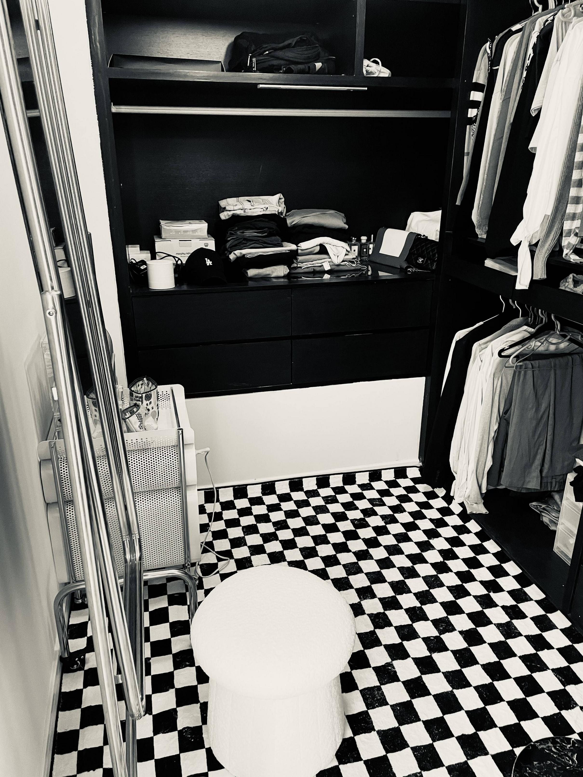 对了还有个细节原本的layout主卧外面有一个开放式的study,我把主卧门往外移把study包进去做成了一个步入式的衣帽间,所以现在主卧进门处右边就是一个衣帽间,主卧原本的衣柜砸掉,空间瞬间变大好多~铺个床边毯放点抱枕看投影不要太爽,哈哈哈
