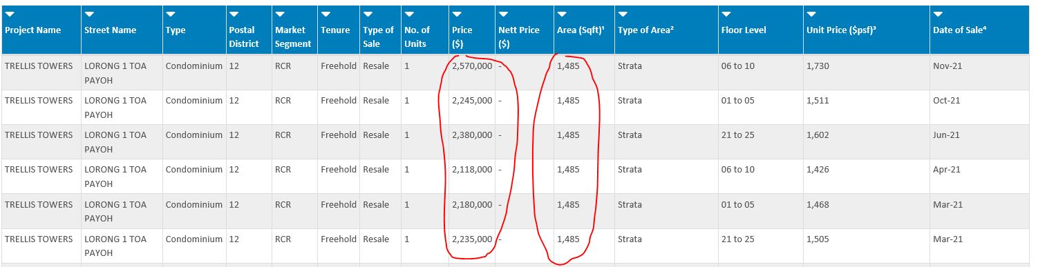 oleander tower 1463sqft 1.76-1.8m 可以成交 trellis tower 1485sqft 2.65-2.65m 可以成交。