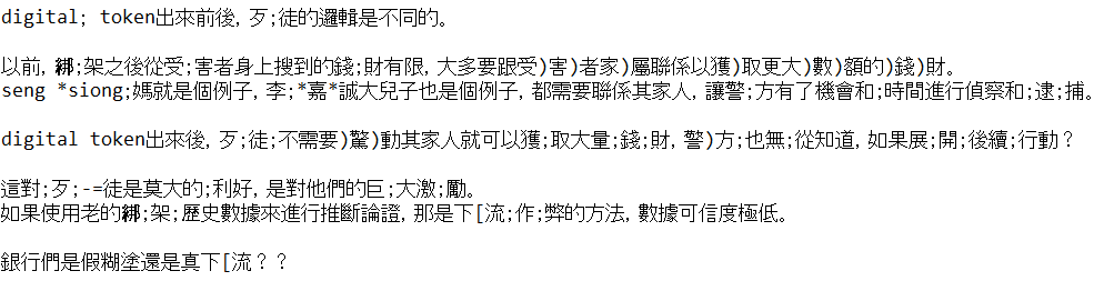 任何政策的後續效應都是滯後性的digital token出來,大家還沒消化完,歹徒也還沒消化完。