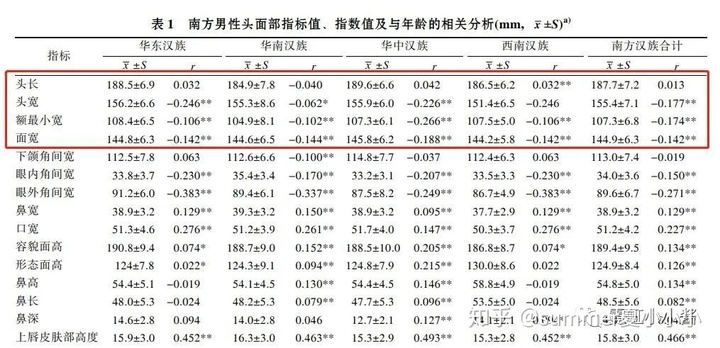根据《中国科学》杂志一篇有关南方汉族人的论文显示,南方汉族群体的头面宽会在40岁达到峰值,其后随着年龄增长逐渐下降。