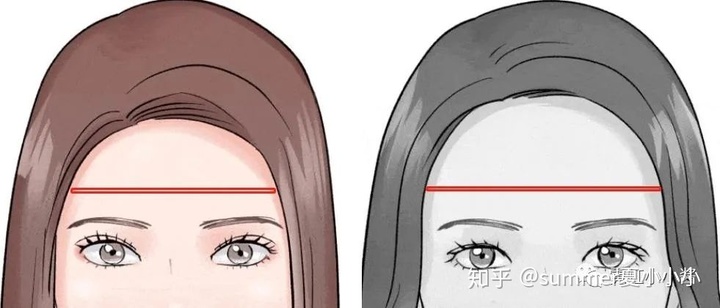同样是脑补原理,当头上有头发时,我们对一个人正面头型大小的判断除了以脸型为基准之外还以额头露出的宽窄为准。