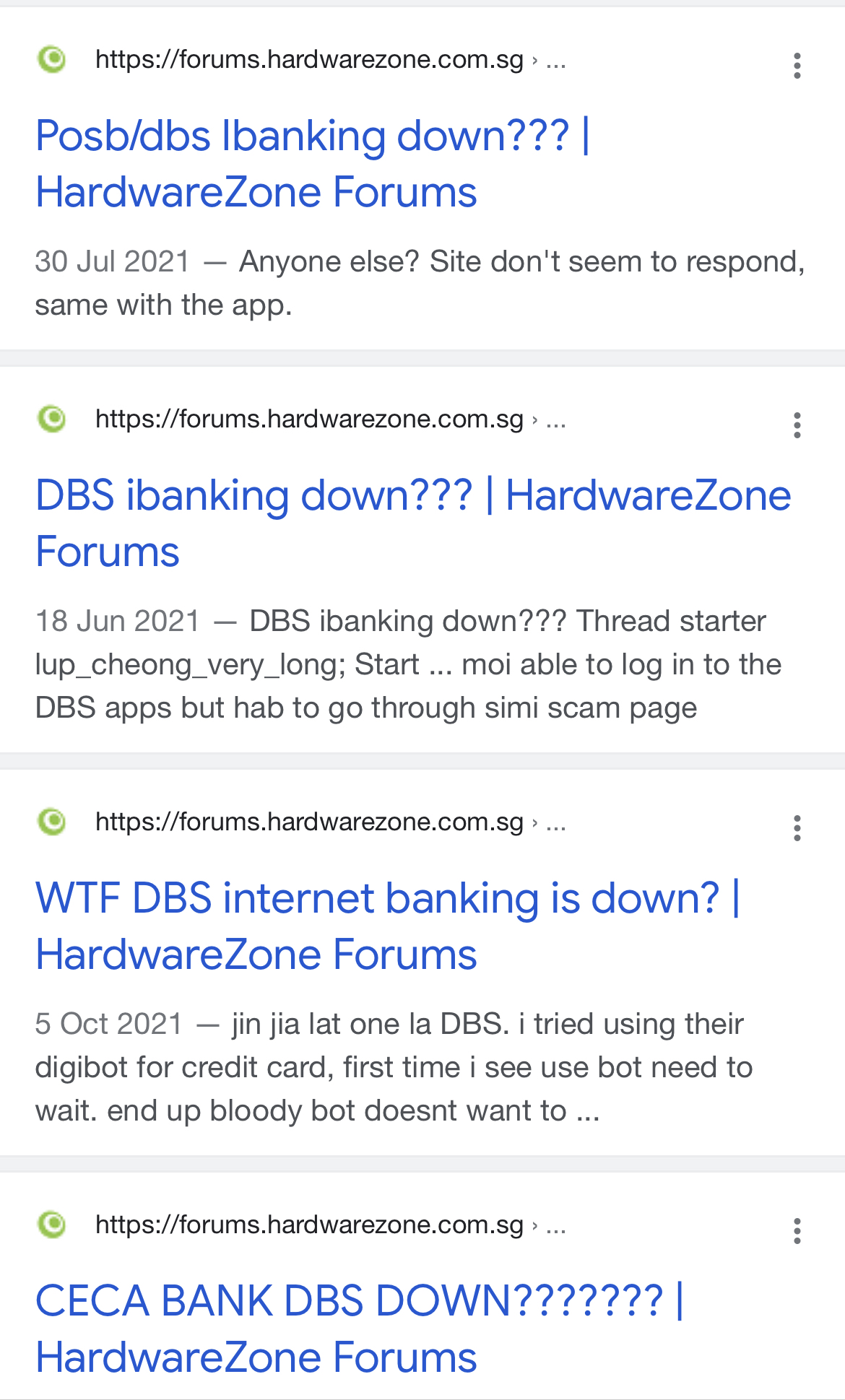 多谢告知原因但是这个真的不是一两天的问题了。很长时间以来都有问题。DBS这样重要的大公司会影响很多人,不知道政府部门对这个有罚款吗?