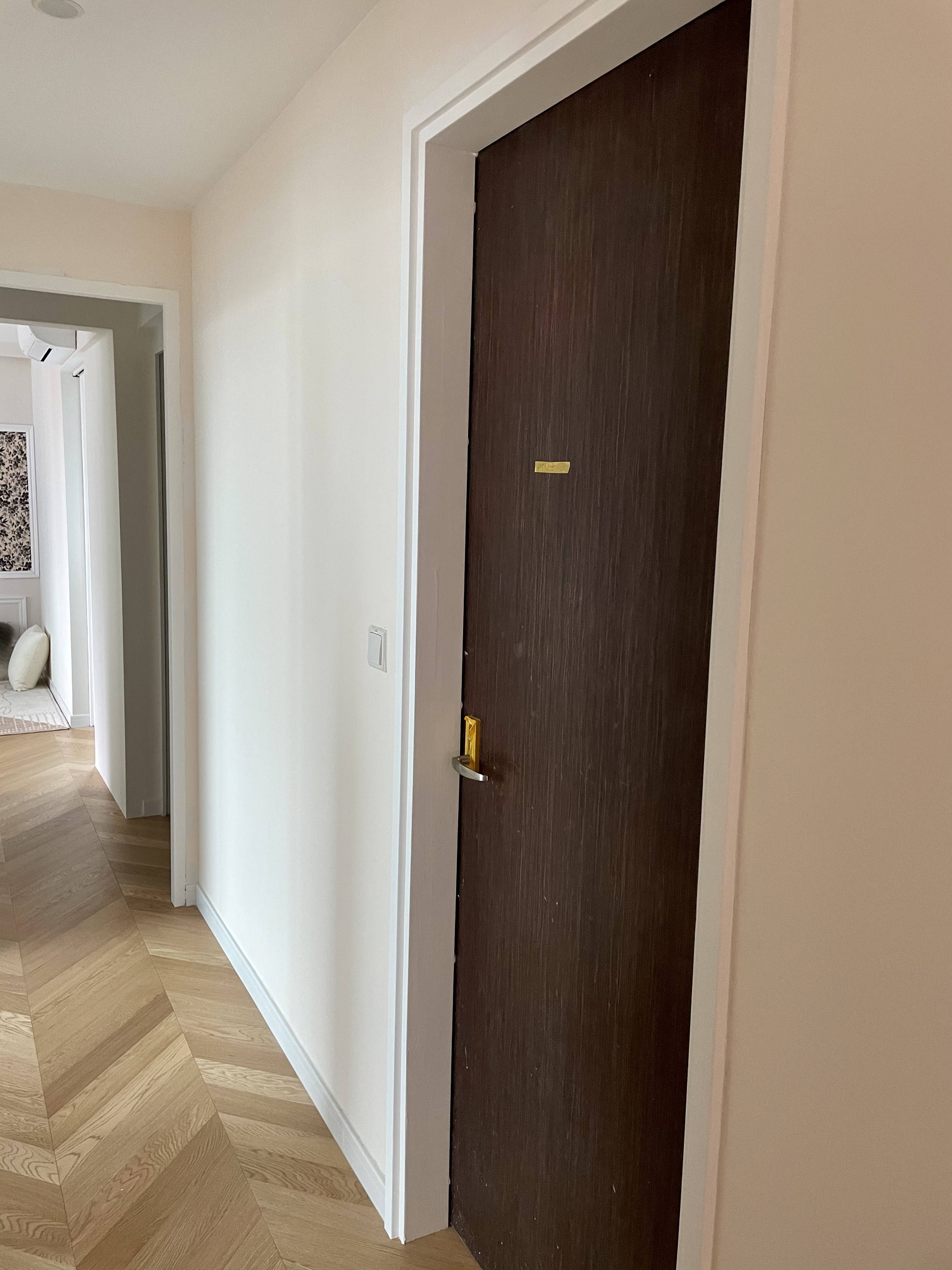 勺子小姐 • • 2619 次浏览搬进新家一个多月了,一直还有一些修修补补的工程没有做完,其中房门改色就是其中一项. 可能有人会问为什么不直接换门,首先本地的免漆门基本跟质感不沾边了,想要质感好的就只能烤漆门,基本都在1-2k新币一扇,质感还不如国内烤漆门,也想过国内淘宝运过来,但是由于规划的比较晚再加上怕尺寸有误差,还是决定自己试试改色(本着改色不成再换门的想法,哈哈哈).其实油漆已经到了很久了,懒癌发作一直没行动. 这周终于弄完了~原本的深色木门跟整体风格不太搭,打算全部刷上白色再加上pu线条,成果还是相当满意的~本次改造所需材料:福乐阁黑板漆,pu线条,切割神器,磨砂纸,油漆刷结构胶及胶枪. 以下是改造注意事项(本来想拍改造视频结果忘记了)
