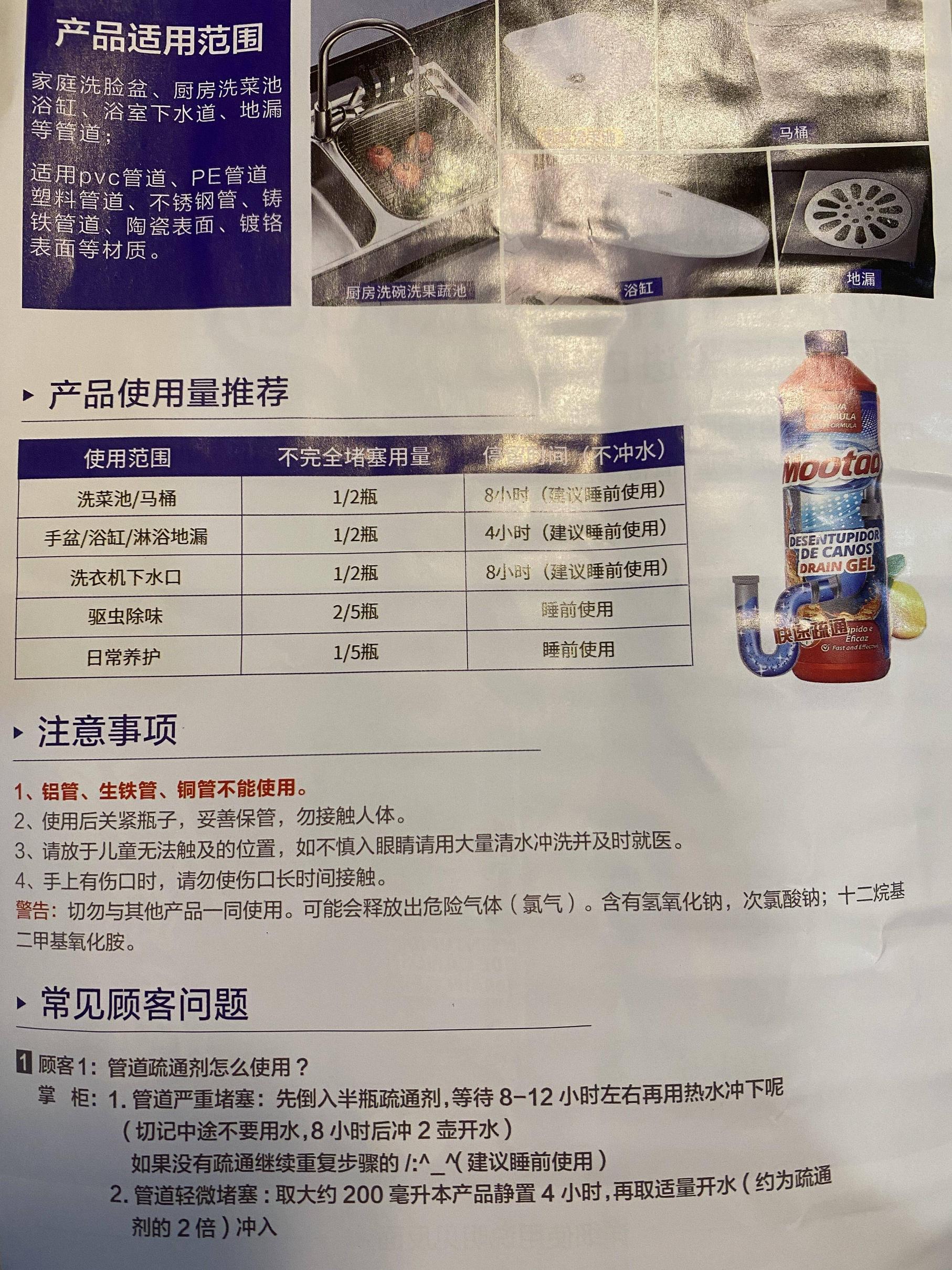 尽管放心这点疏通剂到了主管道就是九牛一毛,一进去就被稀释了。