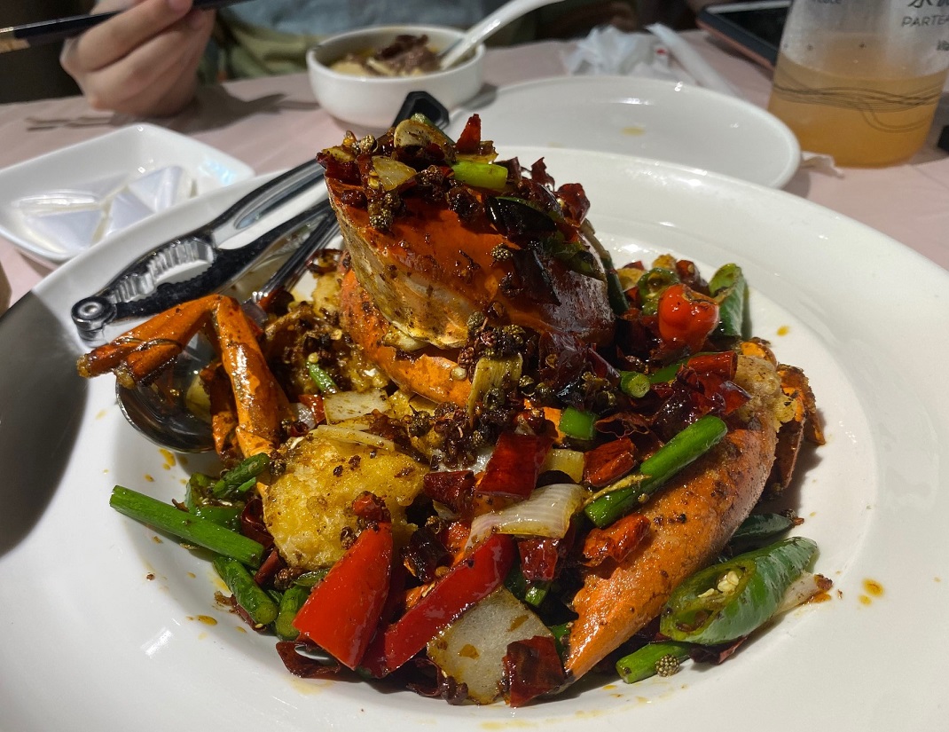 店员推荐店员今天特意推荐了香辣蟹,卖相很好,味道不错。不过,可能炸的有点过,剥壳比较麻烦。 配菜可以吃。