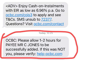 这很可怕呀因为之前的SMS都是OCBC的,很容手痒去点。谢谢提醒。