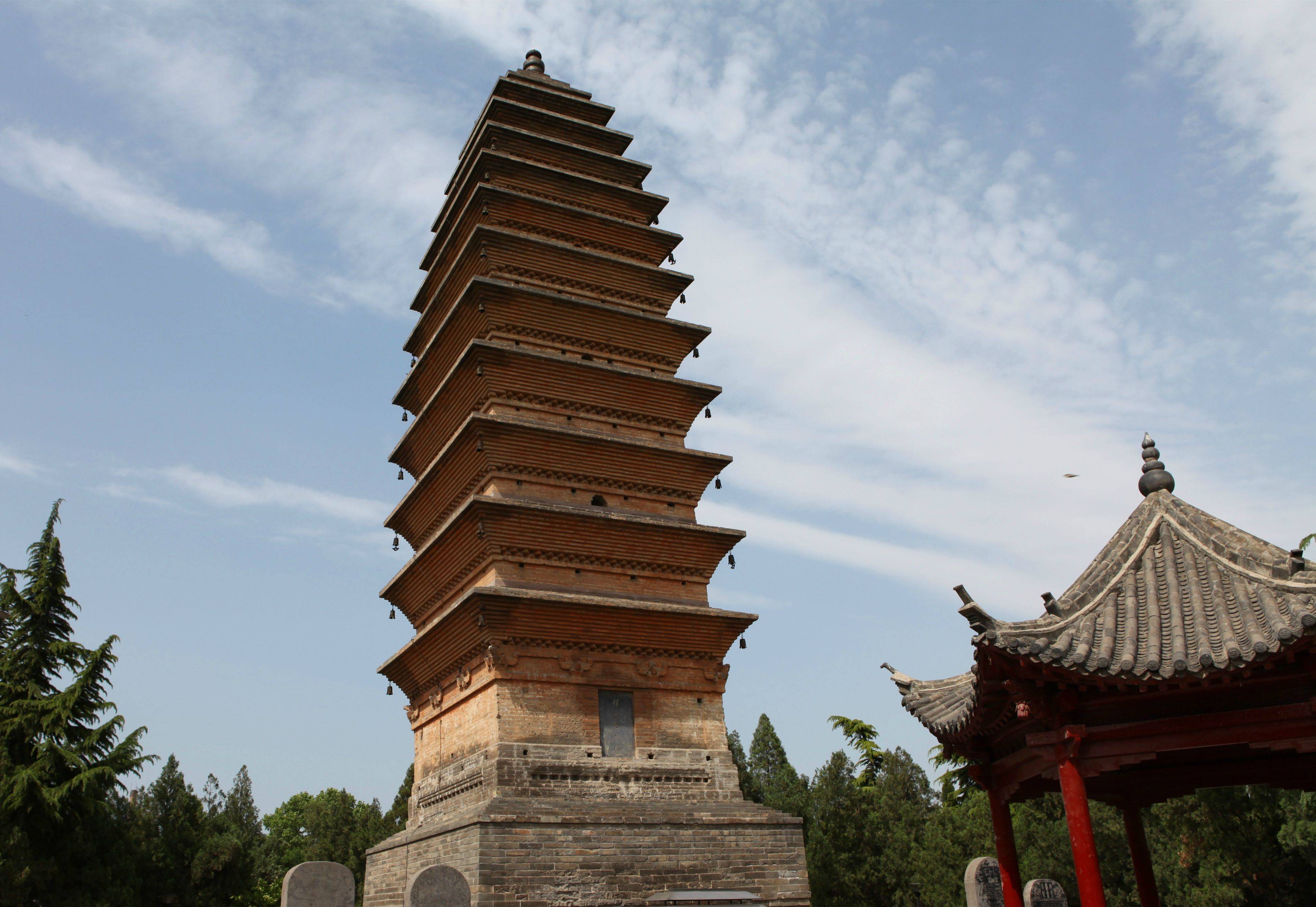 白马寺附近的齐云塔是我个人蛮心水的去处。塔上风铃在风中叮当作响,而人在塔下击掌,就会从塔上传来如蛙鸣般的回音,很有意思。