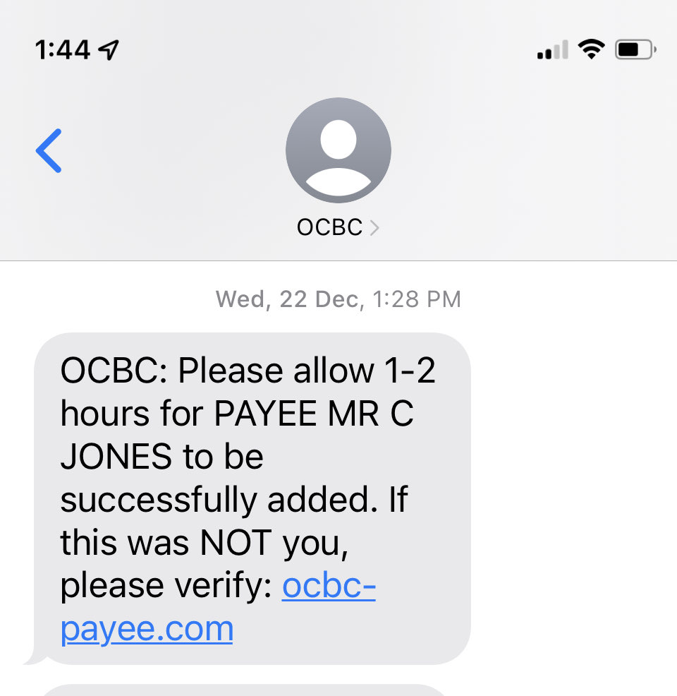 可以理解我都差点点进去…问题是这个东西不熟悉OCBC的后台验证流程也不好把钱转出来吧。银行本身肯定有一定的责任啊,点了链接以后具体会发生什么?让你输入你的用户名,密码和手机验证码?然后也不能转账吧…