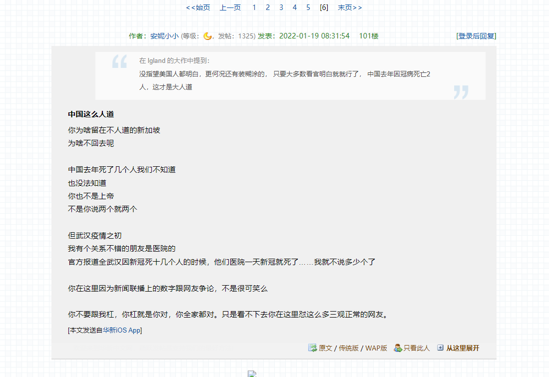 【吐槽八卦】送给那些一直攀来比去的喷子那么大一个国家,如果没有一个先进的管理,是不可能有效的。国内的二维码,实行的就是很先进,小坡这么小的国家,都没办法做好管理,二维码区分红黄绿的推行没多久,就撤了。相信一部分原因也是技术不成熟。国内的经济发展形式也是意料之中的,疫情控制好,各行各业都能正常运作。清零政策的灵活性,迟早也会提高的,如果有好的灵活性的又能保障疫情受控的方案,肯定会推行的只是这个灵活性高又安全保障的方案全世界也没一个成功案列。各位喷国内政策不人性的,麻烦耐心等等吧该帖荣获当日十大第2,奖励楼主18分以及27狮城帮币,时间:2022-01-19 22:00:04。