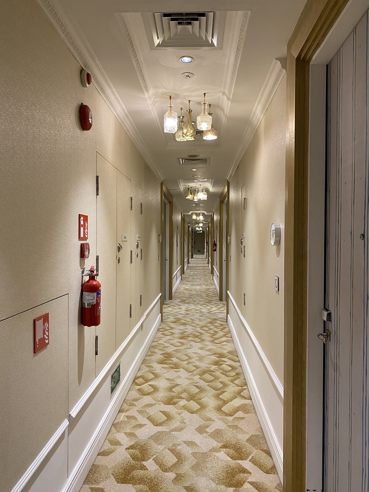 他建议我到大厅坐着等,我说不想动了,就在门口等把。他下去带了另外一个人上来,然后两个人当着我的面蹲在地上开始拆锁,是真的把门锁卸下来的那种拆法,很简单,看完立刻对酒店门锁没有任何安全感了。终于,门锁修好了,想换个房间,那两位一直向我保证门锁不会有问题了,不用换。好吧,反正明天就退房,不换就不换吧。