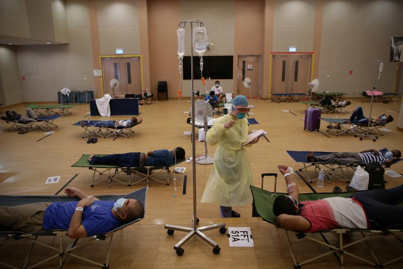 许多医护人员在疫情暴发后便长时间站在抗疫前线,不少人因此出现疲态。(海峡时报)